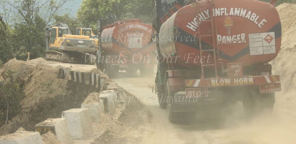 Drive from Dochula Pass to Punakha in Bhutan: As I mentioned at the beginning of this post, the Thimpu-Punakha highway has been undergoing road widening work for a couple of years now and that holds up traffic. In fact, there are roadblocks at specified timings during the day for the entire week from Monday to Saturday. These timings are posted/communicated via Radio so that you can plan your drive accordingly. There are no roadblocks on Sundays though, and you can drive up or drive any time you want.