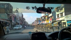 As you get out of the airport, it’s a beautiful 4-5 kms of drive through the countryside lined with trees and fields. Soon though, we made our way through the chaotic little towns of Lalkuan and Haldwani, full of traffic and crazy honking. Typical of the usual Indian small towns, we found vendors selling every type of wares – vegetables, fruits, items of everyday use – by the roadside. We picked up some fruits as the we had had nothing since our lunch at Delhi airport.