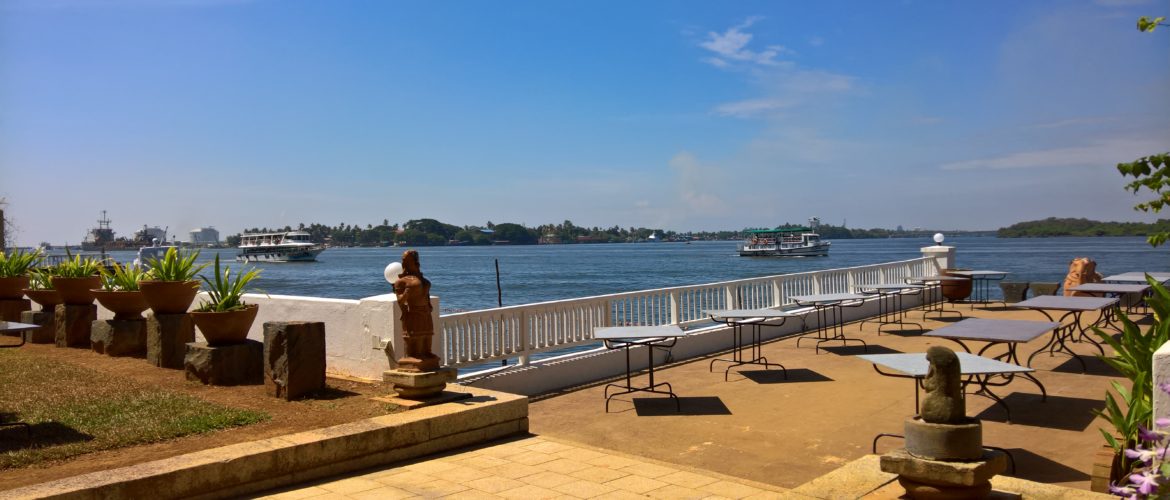 Fort House Restaurant in Fort Kochi: This is part of a family owned hotel in Fort Kochi and is famous for its seafood and hospitality. We went there for lunch and had a table right next to the lake, with ships and steamers sailing by while we ate. Order their specialities — Pepper Garlic Calamari and Prawn Kerala Fry for starters and Kerala Paranthas with Fish Kerala Curry. The whole experience, the excellent food, fresh fishes and the local ingredients, makes dining there a delight!
