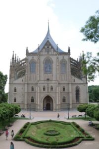 Stomachs filled, we were ready to explore Kutna Hora. Started off with St Barabara Church, set in sprawling grounds. Baroque and Gothic both, the Church is sure to awe you. Its magnificent spires gives it an imposing look. From the inside too, it is as impressive. The line of sculptures on the other side tell the tales of the town from its historic times. Climb the terrace opposite the Jesuit college for a good view of the town and the Church’s little vineyard on the left slope.