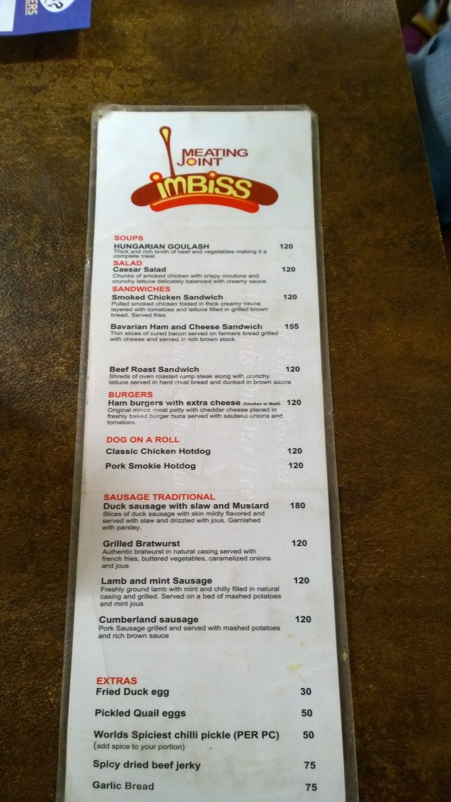 Restaurant Review — Menu Card of Imbiss in Bandra (Mumbai)